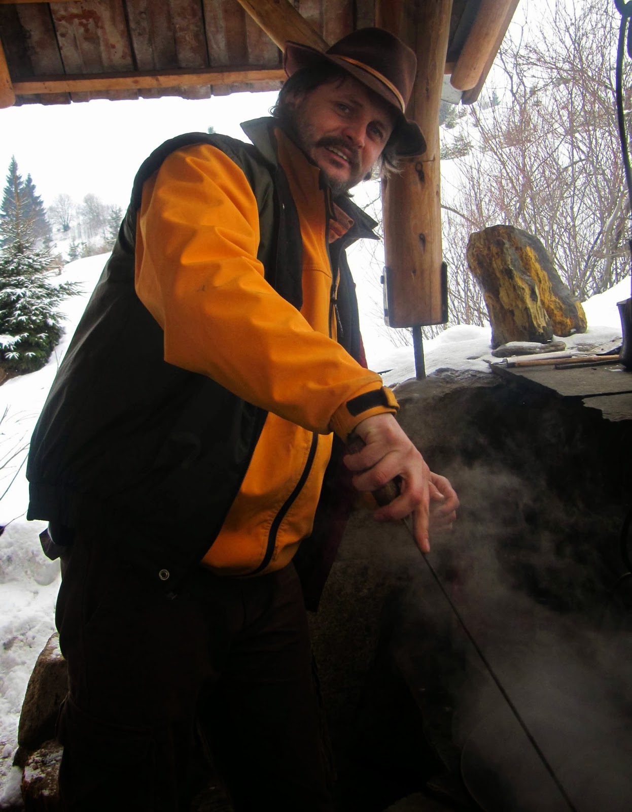 „Ezt a receptet Ferencz József vadászmester barátomtól tanultam” – szögezte le mindjárt az első pohár melegítő pálinkánál a művész. Ő ugyanis ragaszkodott ahhoz, hogy szabadban, bográcsban főzze meg a különleges vaddisznópörköltet annak ellenére, hogy mínusz fokokban nem volt hiány a havas hegyoldalban – ezt enyhítendő jól jött a csángóföldi gyümölcspálinka. A festői környezetben lévő erdei lakban egyébként tucatnyi vidám barát segédkezett a zöldségpucolásban, -darabolásban, úgymond készen kéz alá adva a pörkölt minden hozzávalóját. Czimbalmos Attilának „csupán” annyi dolga volt, hogy a megfelelő pillanatban bográcsba rakja a hozzávalókat, na meg az éppen szükséges fűszert. A művész mellesleg lelkes résztvevője szülőfalujában a különféle alkalmakkor szervezett főzőversenyeknek, és igyekszik hasznos tagja lenni a faluközösségnek. Keze munkáját Erdély-szerte számos templomban megcsodálhatjuk, így többek közt a csíkkarcfalvi, a gyergyószárhegyi, gyergyóditrói templombelsőket, illetve a csíkmenasági templomban a Szent László-legendát restaurálta.